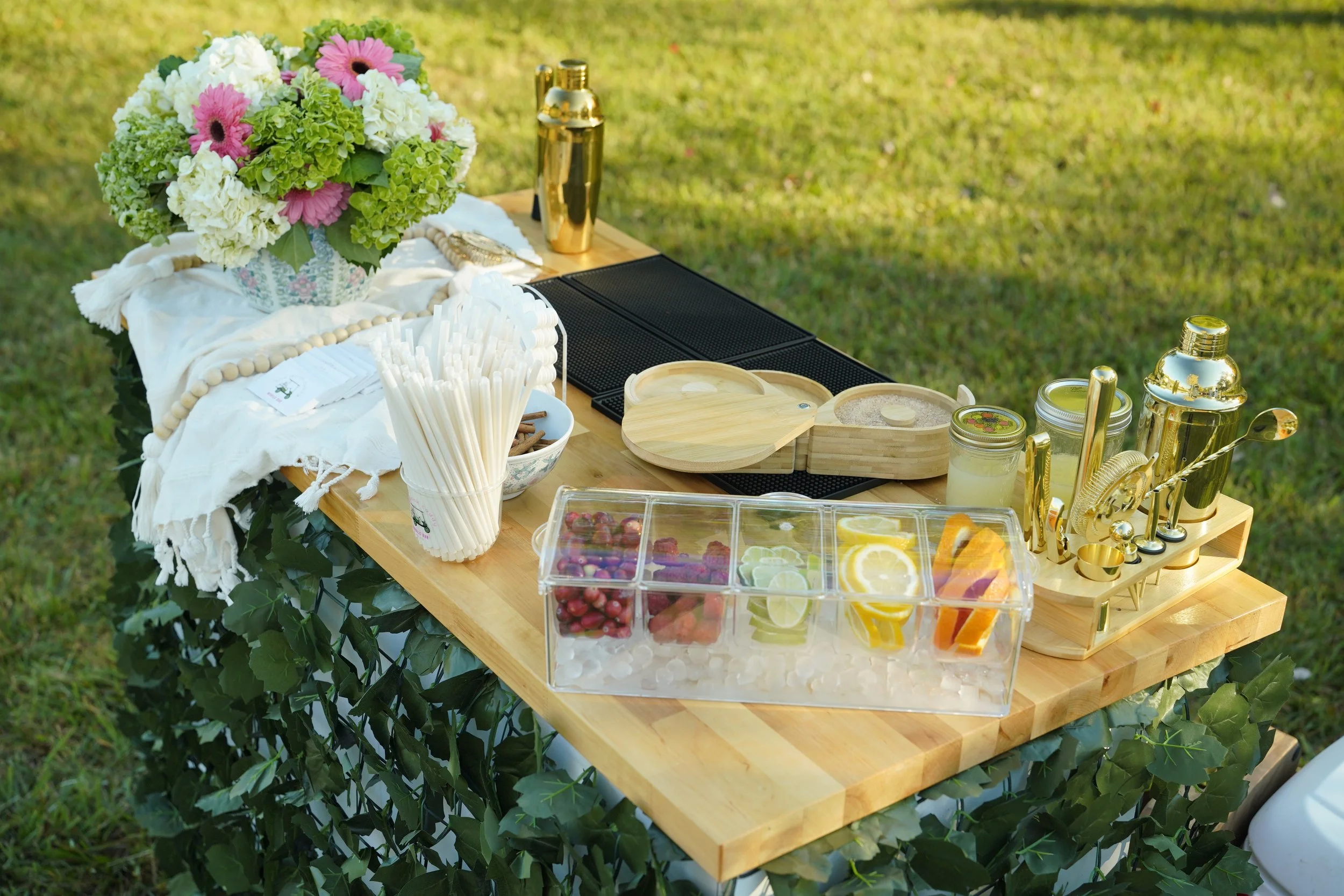 Includes all of the items mentioned in Pour + Mixer and Pour + Craft Cocktail services